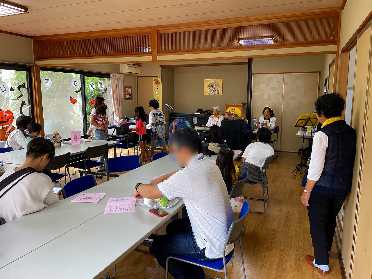 ■オカリナ・ハーモニカ演奏、紙芝居、マジックの演技を実施した。■HSCマジッククラブの協力参加で「チャイナリング」を演技してもらい、会場から大きな拍手をいただけた。■8月の子供食堂のお手伝いの時に依頼され、今回初めての訪問であったが、事前に下見をしていたのでリラックスして出来た。■紙芝居は、会場の反応が大きく、演技者もそれを受けて更に盛り上がり良かった。■時間配分もうまく行った。■マジックも会場の皆さんからのおどろきの声があがり、うまくできた。■紙芝居の後に休憩(10分間)をとった。■会場の方々と、コミュニケーションをとりながら演技ができて良かった。■終了後、デコレーションケーキとコーヒを会場の方々と一緒にいただき、私たちの演技の事もお話しが出来て良かった。
