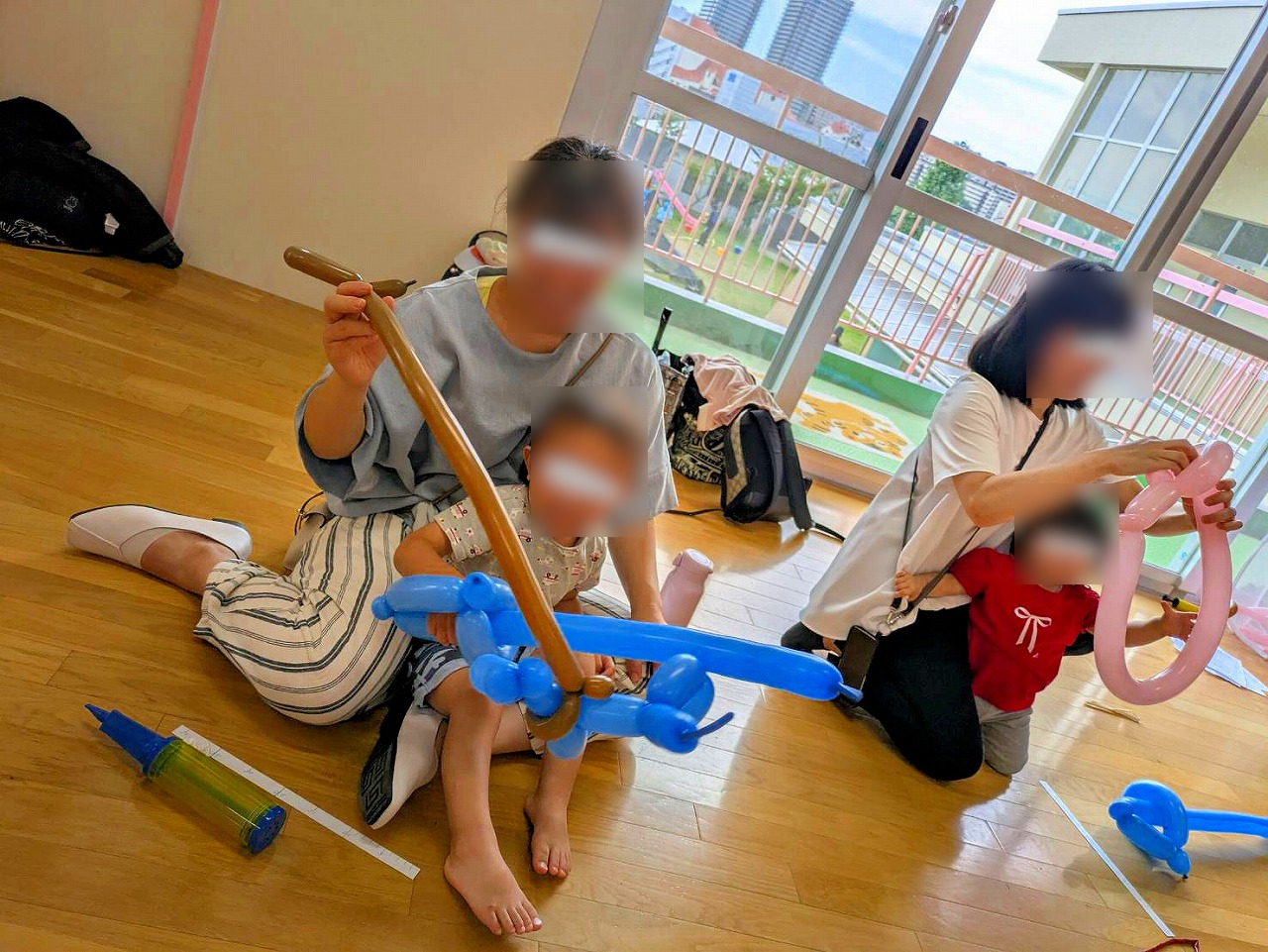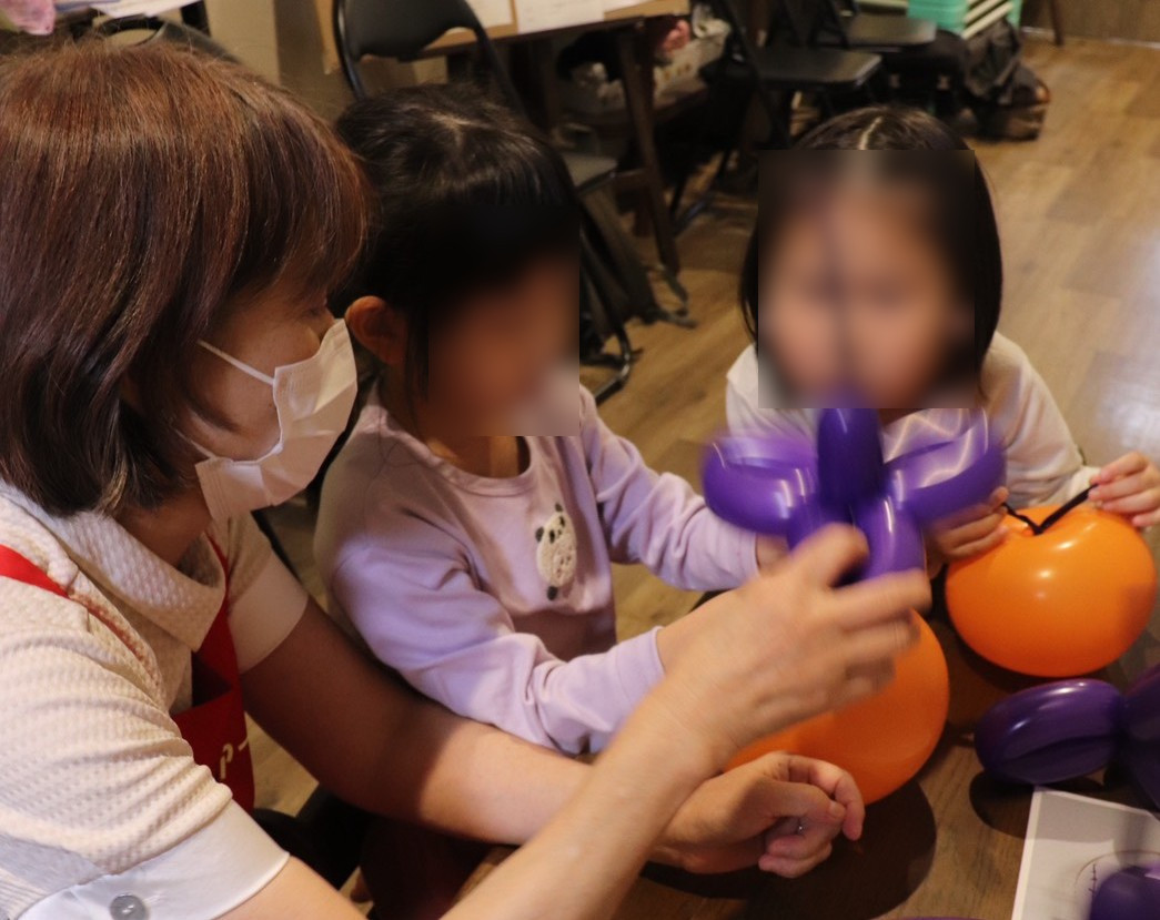 2回目は未就学児と思われるお子様が多く、保護者の方が風船と格闘されていました。ふ~せんやの新入会員も4名ほど見学してもらい、ボランティアに参加していただく参考になったと思います。