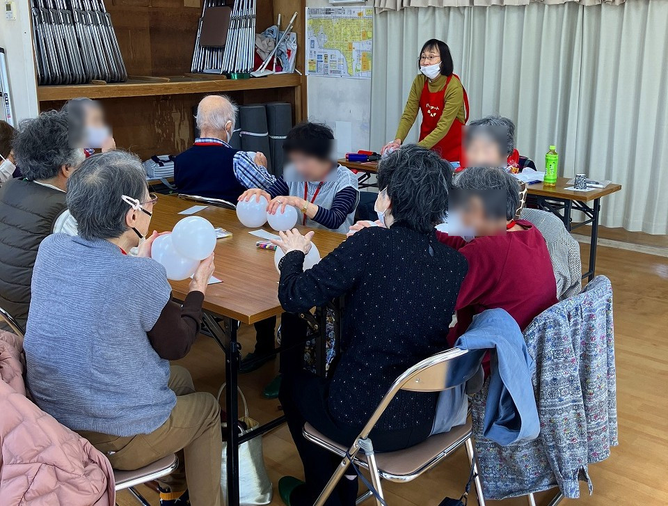 内容 1. ふ~せんや(バルーンアートクラブ)のボランティアの方に教えて頂き、お散歩ゆきだるまを作りました。