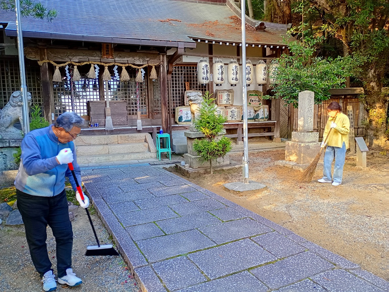 清掃に夢中になり、参拝者の通り道を塞いでしまうこともあったので注意をしたい。