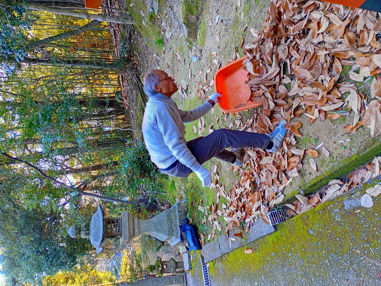 境内階段組は3人で、ほぼ時間内で問題なく遂行できた。竹箒も慣れてきて、そこそこ、操れるようになった感じがした。