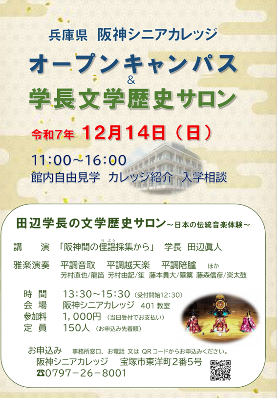 2025.12.25阪神シニアカレッジ令和8年4月入学生の申込は、1月5日(月)から14日(水)まで受け付けています。